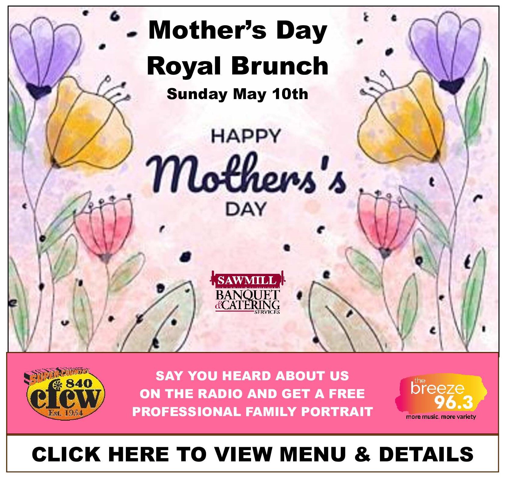 Sawmill Banquet & Catering Services is a locally owned professional catering company. With the ability to serve many sizes of groups ranging from 25 to 5000 guests for any occasion.